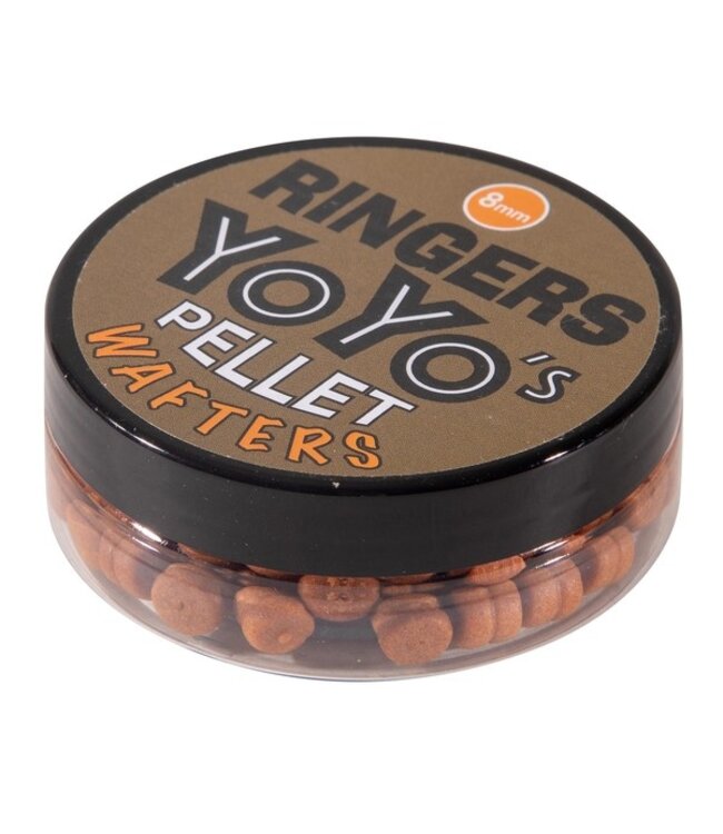 De Ringers YoYo's Duos Wafter Pellet 8mm is een hoogwaardige haakaas met een unieke groef rondom het midden, speciaal ontworpen om een bait band perfect te positioneren. Hierdoor blijft het aas beter zitten dan bij standaard wafters.