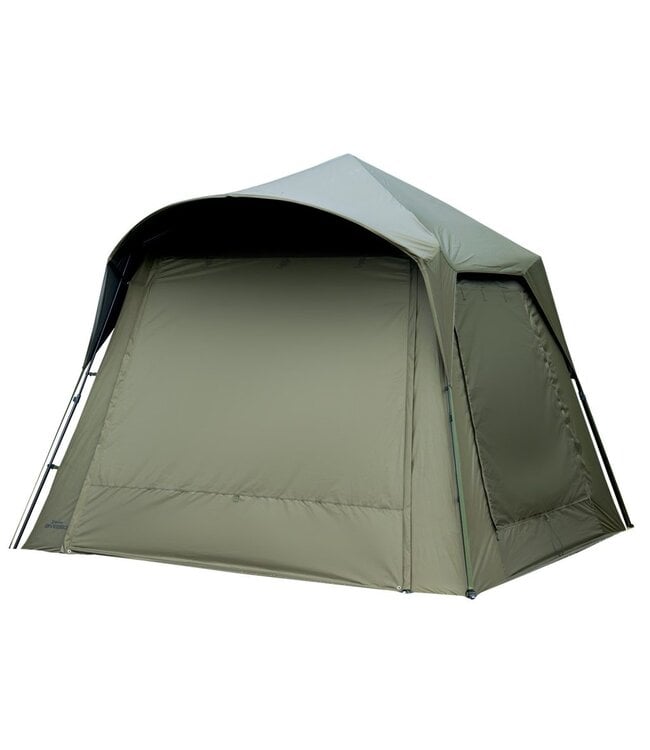 De Vapour Peak wordt eenvoudig bevestigd met 4 clips en spansystemen en wordt geleverd met een peak pole voor extra structuur en een verbeterde afwatering aan de voorzijde.