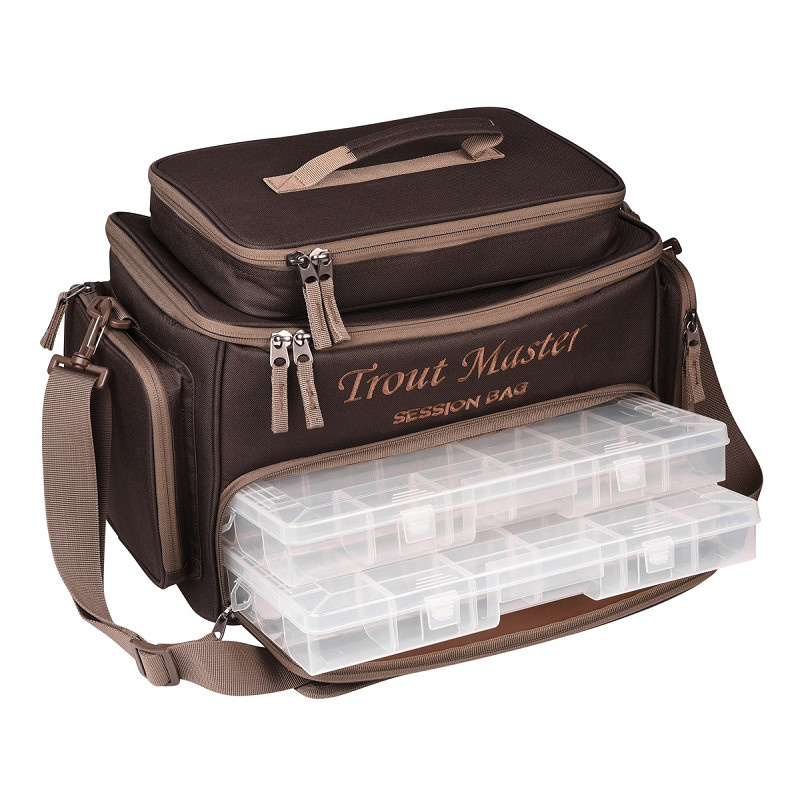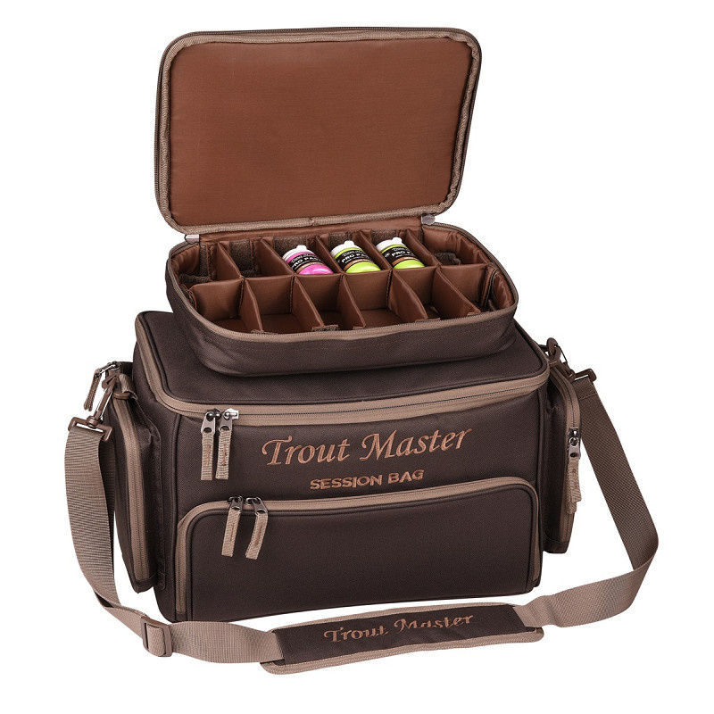 De Trout Master Session Bag is ontwikkeld voor de forelvisser die maximale organisatie, duurzaamheid en gebruiksgemak verlangt. Deze tas biedt een complete oplossing voor het meenemen van aas, kleinmateriaal, kleding en voedsel tijdens een vissessie. Dankzij de twee meegeleverde tackleboxen van 35x22x5cm blijft al het kunstaas overzichtelijk en snel bereikbaar. Daarnaast beschikt de tas over twee zijvakken en een verwijderbare aastas die plaats biedt aan 24 potjes Pro Paste of TM Softbaits.
