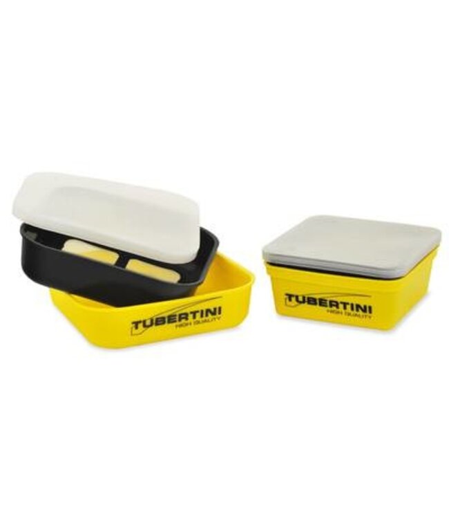 De Tubertini Double Bait Box Verre de Vase bestaat uit een 2 containers, één met een bodem van gaas en een deksel. Specifiek ontworpen voor de bevochtiging en de korrels of voor gebruik met aas dat als dode maden en vers de vaas inweekt moet blijven. Het zeer fijne net laat de vers de vaas niet door, maar laat heel gemakkelijk leeglopen.