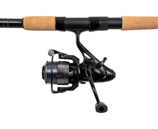 De bijgeleverde Target Fish 3000FS freespool molen beschikt over 3+1 kogellagers, een aluminium spoel en handgreep, een dikke beugelarm en een rubberen knop voor extra grip. Met een overbrenging van 5.2:1 en een inhaalsnelheid van 78cm per slag levert hij soepele prestaties. De molen is reeds opgespoeld met 0.30mm khaki Target Fish nylon (180m capaciteit) en heeft een maximale slipkracht van 5,5kg.