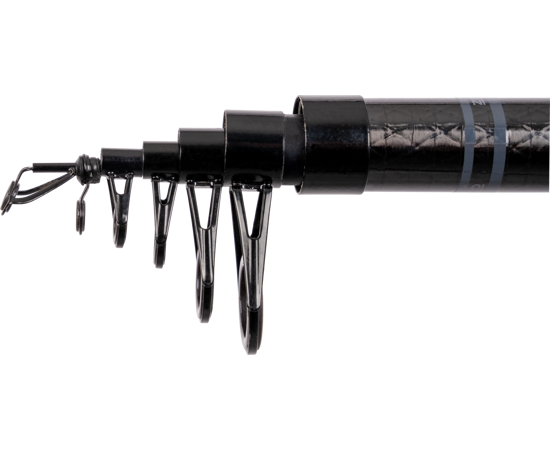 Veiligheidswaarschuwing: Deze hengel bevat koolstofvezels die sterk elektrisch geleidend zijn. Gebruik nooit tijdens onweer of in de nabijheid van hoogspanningslijnen.