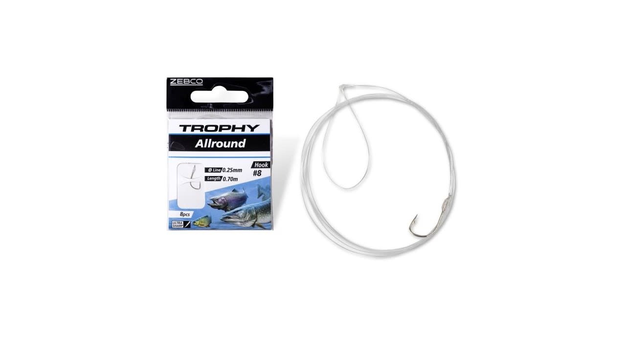 • De Zebco Trophy Allround Hook-to-Nylon biedt de perfecte oplossing voor witvissers die op zoek zijn naar betrouwbaarheid en gemak aan het water. Deze tweede generatie Trophy-voorgelijnde haken combineert een aantrekkelijke verpakking met een verbeterde productietechniek, waardoor je verzekerd bent van kwaliteit en prestaties.