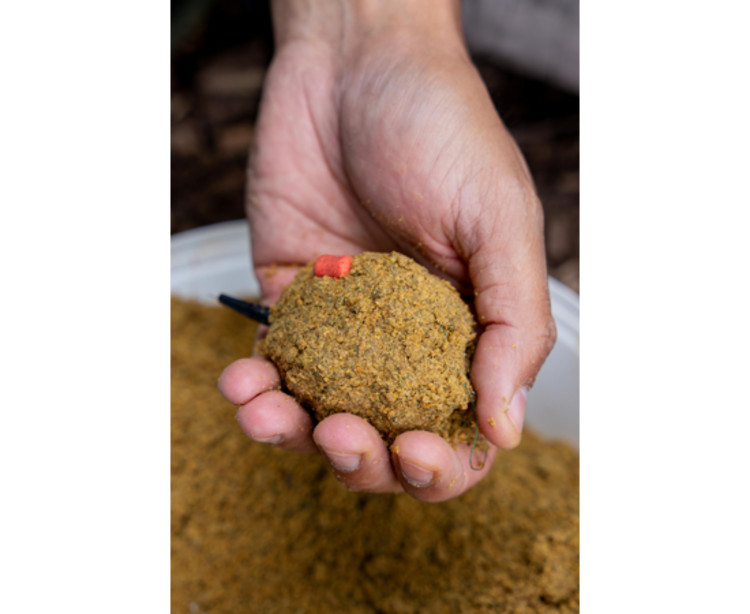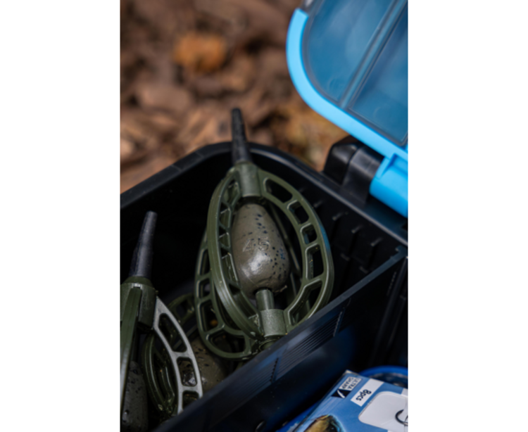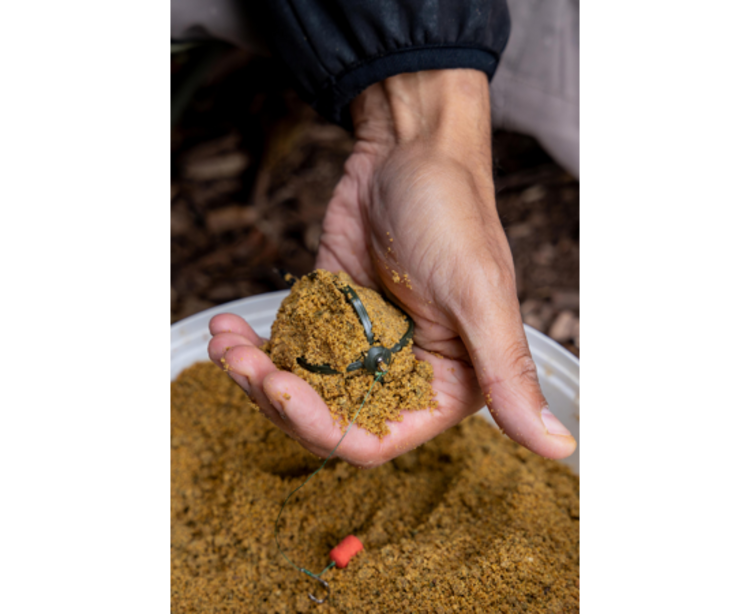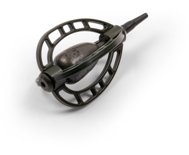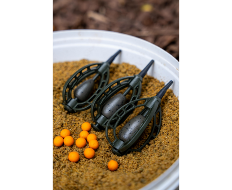 De open frame constructie maakt het zeer eenvoudig om grondvoer of pellets rond de korf te drukken. Je kunt met de hand werken of een method mal gebruiken, afhankelijk van je voorkeur. Het voer hecht zich goed tussen de frame armen en komt bij contact met het water geleidelijk vrij, zodat je haakaas centraal in een compacte voerkussen wordt gepresenteerd.